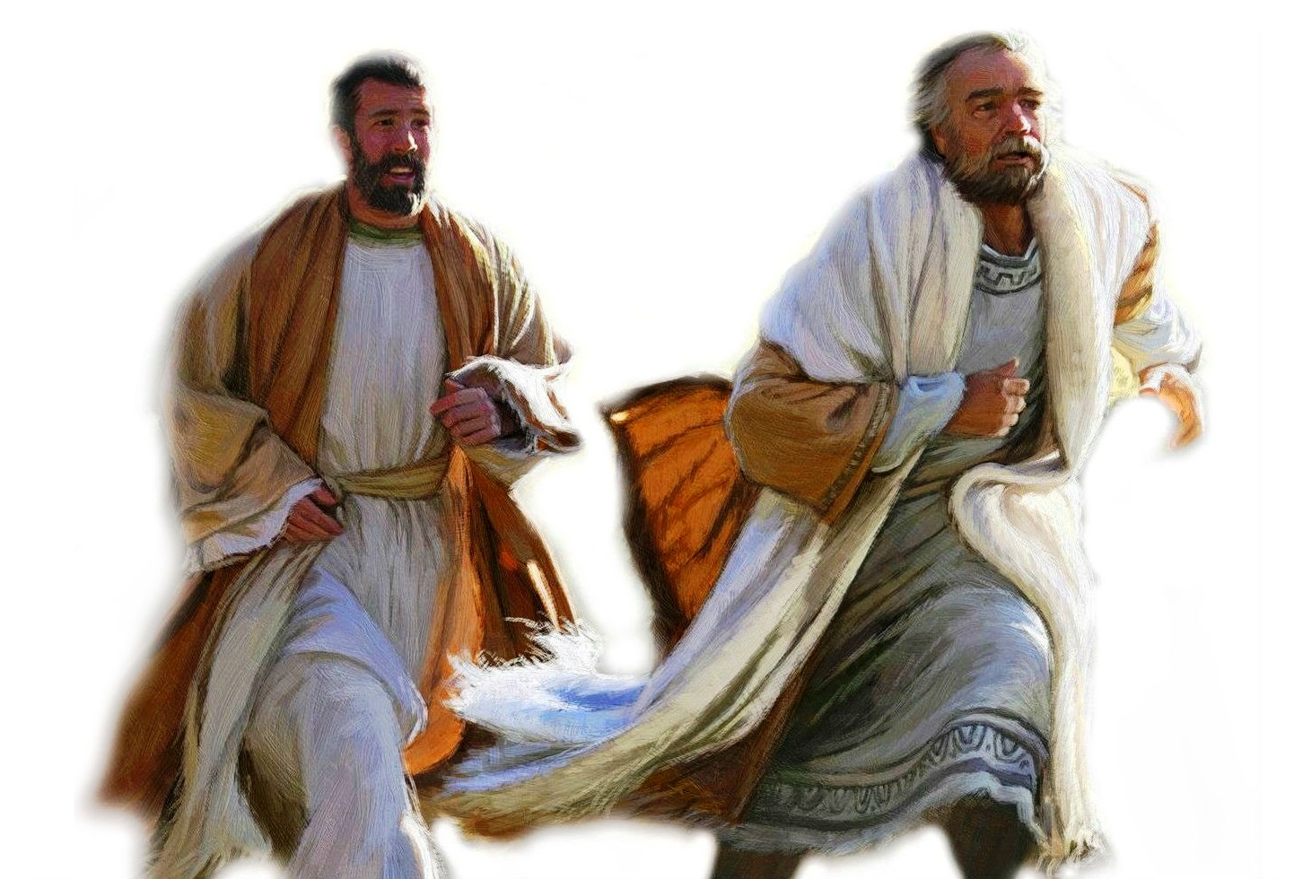 Na corrida para o sepulcro do Ressuscitado (cf. Jo 20, 2-8), Pedro e João correm numa competição saudável. João mais tímido, porventura, que Pedro. Talvez este, sem ter nada a perder, queira recompor depressa a correspondência para com esse Amor danificada pelas suas negações!