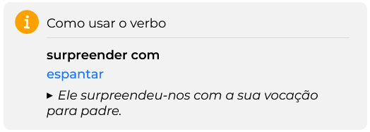 Descobri na infopédia, da Porto Editora, que o verbo “supreender” vem acompanhada como o seguinte exemplo: