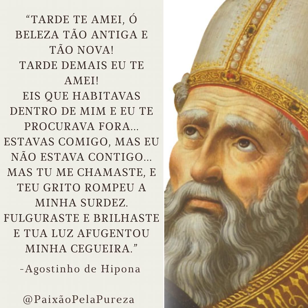 Hoje celebramos a memória de um grande santo bispo e doutor da Igreja, Santo Agostinho de Hipona. Um pecador que se tornou um dos grandes santos de todos os tempos. Tinha muitas fraquezas e era um grande pecador antes de sua conversão. O Papa João Paulo II costumava definir um Santo como Santo é “um pecador que nunca desiste”. Esta definição aplica-se sem dúvida alguma a Santo Agostinho, uma vez que ele, enquanto pecador, nunca desistiu de buscar o amor. “Procurava-o fora” e o Amor estava com ele, mas ele não estava com o Amor. Pôs-se à procura dele e encontrou-o dentro, no mais íntimo. Cá para nós: deixou de O procurar na superficialidade e foi quando começou a procurá-l’O na profundidade do seu ser que começou a percebê-l’O cada vez melhor, com a paz que Ele lha trazia.